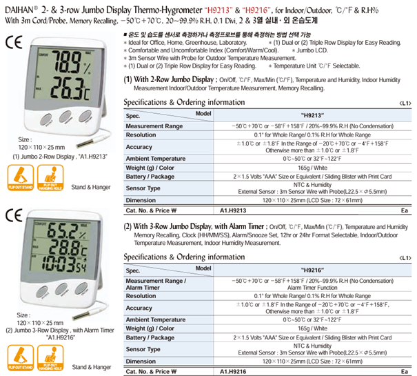 DaiHan H9213 2-row Jumbo Display Thermo-Hygrometer | EMINKH.COM