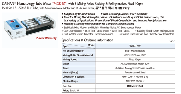 DaiHan MIXR-40 Hematology Tube Mixer (5ea×Mixing Rollers, 40rpm) | EMINKH.COM