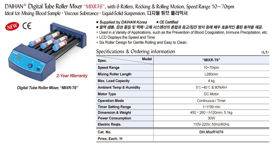 DaiHan MIXR-T6 Hematology Tube Mixer (10~70rpm) | EMINKH.COM
