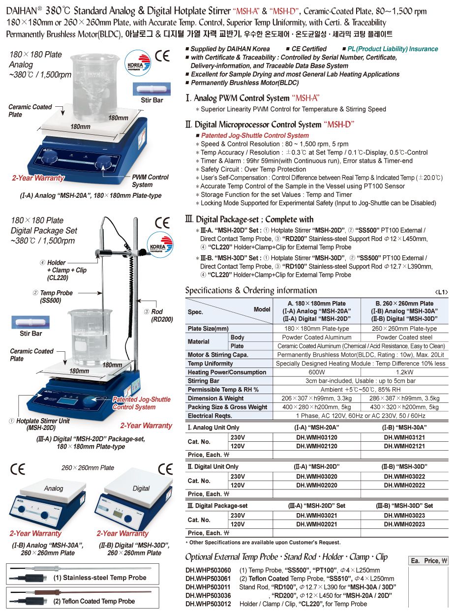 DaiHan MSH-30A 380℃ Standard Analog Hotplate Stirrer (260×260mm) | EMINKH.COM