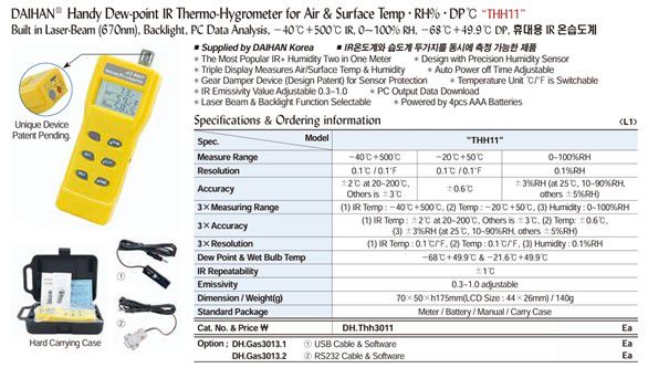 (1) IR Temp : ±2℃ at 20~200℃; Others is ±3℃