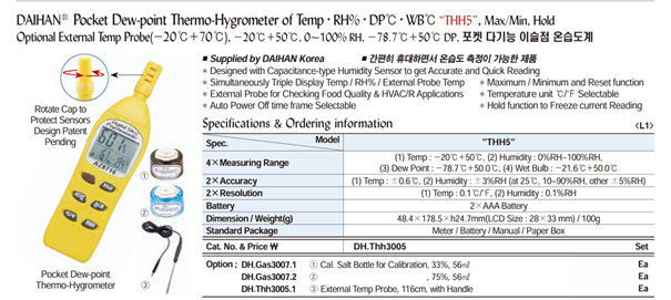 DaiHan THH5 Pocket Dew-point Thermo-Hygrometer (Temp·RH%·DP℃·WB℃) | EMINKH.COM