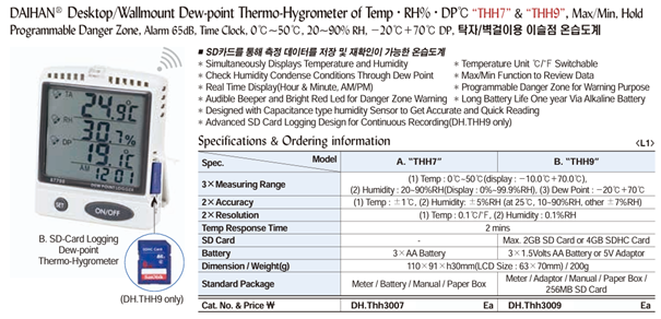 DaiHan THH7 Desktop/Wallmount Dew-point Thermo-Hygrometer of Temp·RH%·DP℃ (Temp·RH%·DP℃) | EMINKH.COM