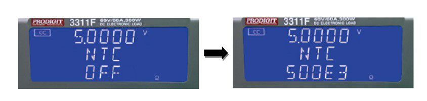 The following descriptions show how to program the NTC resistor option installed in 3302F mainframe. All operations are performed from the front panel of 3310F series electronic load: