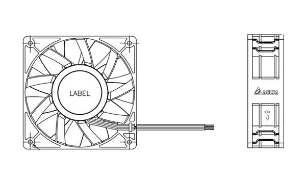 Delta Electronics, Inc. PFB1248UHE309 Tubeaxial Tubeaxial Fan, 120x38mm, 48VDC, Ball, 4-Lead Wires, Lock Rotor Sensor, Tach, PWM | EMINKH.COM