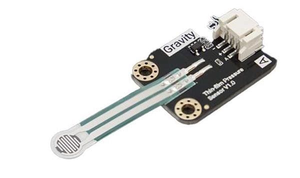 DFRobot SEN0616 Board Mount Pressure Sensors The Gravity: Thin-film Pressure Sensor measures pressure through the deformation of a flexible film material. As pressure increases, the film deforms, producing higher analog output values, while lighter pressure results in lower output. This sensor