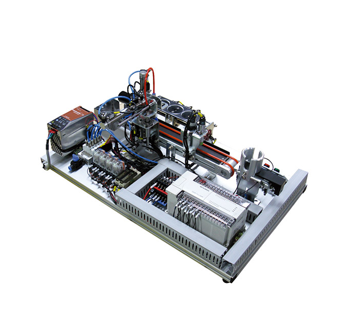 ● This system composed of sheet metal training platform, pneumatic parts, material transport mechanism, material sorting mechanism and electrical control. Pneumatic parts is mainly composed of solenoid valve and cylinder; Material transport mechanism is mainly composed of three phase asynchronous motor and belt.