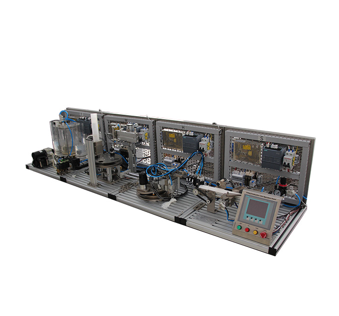 DLPCS-400 filling production line training set is designed according to process control production flow and based on Siemens S7-1200 PLC control system, it has modular structure thus flexible and easy to expansion,the system platform is made of aluminum alloy components, using a variety of mechanical transmission mode to simulate filling production line. It expresses the actual industrial production of electrical control parts, various sensors and modern production configuration control, industrial bus full display in the system.