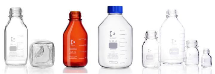 Laboratory Bottles: DURAN offers a full range of narrow-neck and wide-mouth bottles, as well as versions with protective outer coatings. These bottles are autoclavable, pressure-resistant, and designed for safe, long-term storage of liquids.
