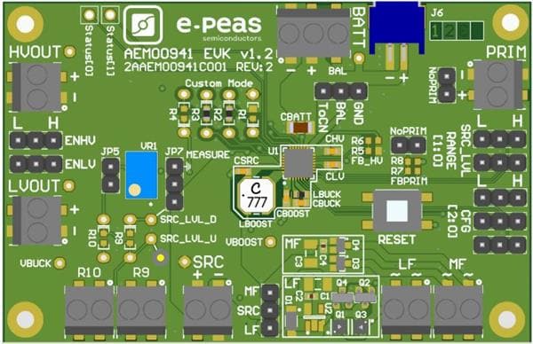 e-peas EVK00941 Evaluation Boards 2AAEM00941C001 Energy Harvesting Evaluation Board (AEM00941 - High performance Compact PMIC with Source Voltage Level Configuration)