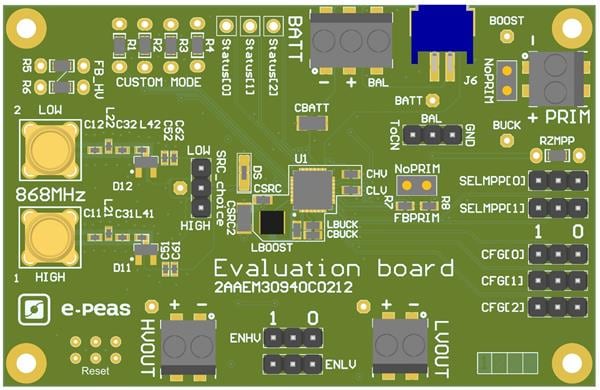 e-peas EVK30940-868 Power Management Specialized 2AAEM30940C021 Energy Harvesting Evaluation Board for 868MHz Radio (AEM30940) | EMINKH.COM