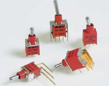 E-Switch 200AWMDP1T2A1M2RE Toggle Switches 3A 120VAC / 28VDC On-None-On PC Mnt | EMINKH.COM