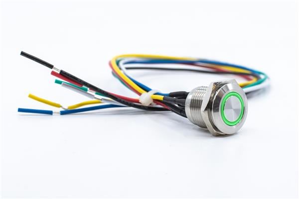 E-Switch PV6FW40SS3R1 Anti-Vandal 2A 48VDC, 300mm wire, Off-(On), Stainless Steel, RGB Ring LED, IP65 | EMINKH.COM