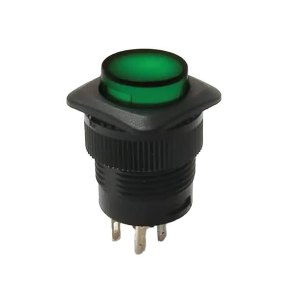 E-Switch RP3508BBLKGRNGRNNS Standard Switches PUSHBUTTON, 3A 125VAC, SPST Off-On, Panel Mount, Front Solder | EMINKH.COM