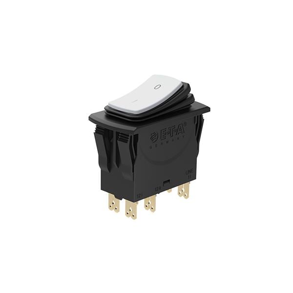 E-T-A Circuit Breakers 3120-N324-P7T1-W12LY4-20A Thermal The 3120-N...4 IP65 rated thermal circuit breaker/switch combination unites overcurrent protection and the function of an ON/OFF switch within a single component. The trip element is a thermal bimetal. Type 3120-N...4 is ideally suite