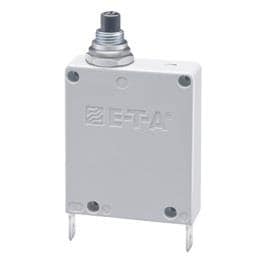 E-T-A Circuit Breakers 3400-IG2-K20-5A Thermal-Magnetic Single pole thermal-magnetic circuit breakers with tease-free, trip-free, press-to-reset, snap action mechanism (R-type TM CBE to EN 60934; M-type with manual release (-H). Available with fast acting and standard magnetic tripping cha
