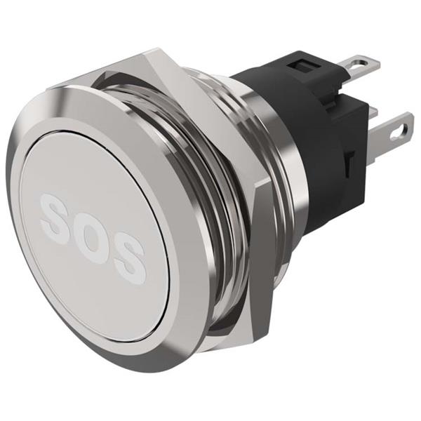 EAO 82-6151.1A54.B015 Anti-Vandal Illuminated pushbutton.momentary.22mm D-Shape.Stainless steel.Flush/flat.Illum symbol B015 SOS white.24V.Ag.Plug In