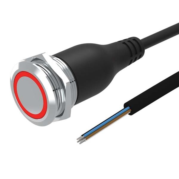 EAO 82-6655.2114 Anti-Vandal Illuminated pushbutton.maintained.22mm.stainless steel SUS 316L.flush/flat.ring illumination Tritan.red 24VDC.Ag.Cable 200mm without Connector