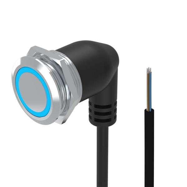 EAO 82-665C.2124 Anti-Vandal Illuminated pushbutton.maintained.22mm.stainless steel SUS 316L.flush/flat.ring illumination Tritan.blue 24VDC.Ag.Cable 200mm without Connector.Cable outlet 90