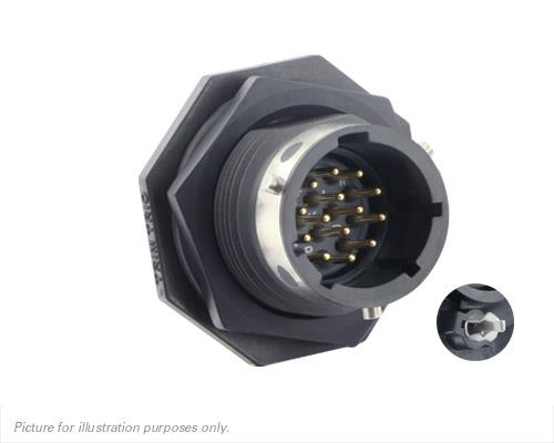 Eaton Souriau-Sunbank UTGX712D14PW32 Receptacles Jam nut receptacle & hold down clips,without backshell, with 14 male PCB contacts, IP68/69K in unmated conditions, keying W