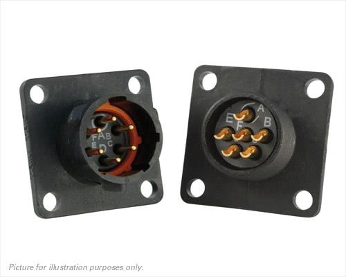 Eaton Souriau-Sunbank UTS010E6PW Receptacles Plastic square flange receptacle, without backshell, with 6 male solder contacts, IP68/69K in unmated conditions, keying W
