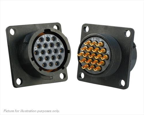 Eaton Souriau-Sunbank UTS014E19SY Receptacles Plastic square flange receptacle, without backshell, with 19 female solder contacts, IP68/69K in unmated conditions, keying Y | EMINKH.COM