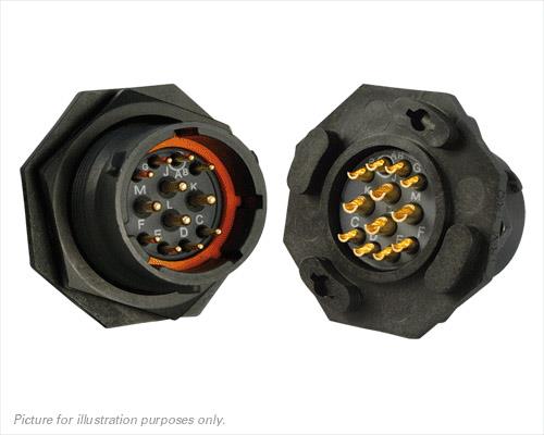 Eaton Souriau-Sunbank UTS714E12PX Receptacles Plastic jam nut receptacle, without backshell, with 12 male solder contacts, IP68/69K in unmated conditions, keying X