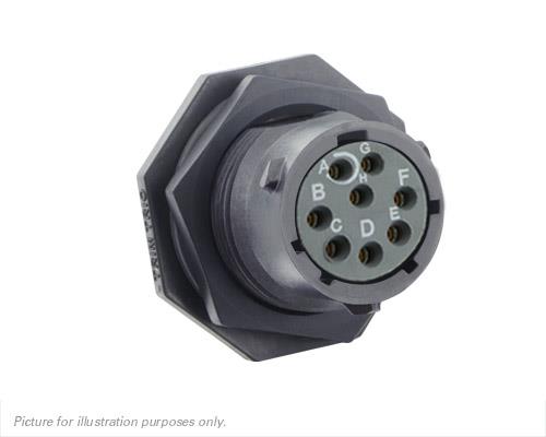 Eaton Souriau-Sunbank UTSX712E8SW Receptacles Jam nut receptacle, without backshell, with 8 female solder contacts, IP68/69K in unmated conditions, keying W