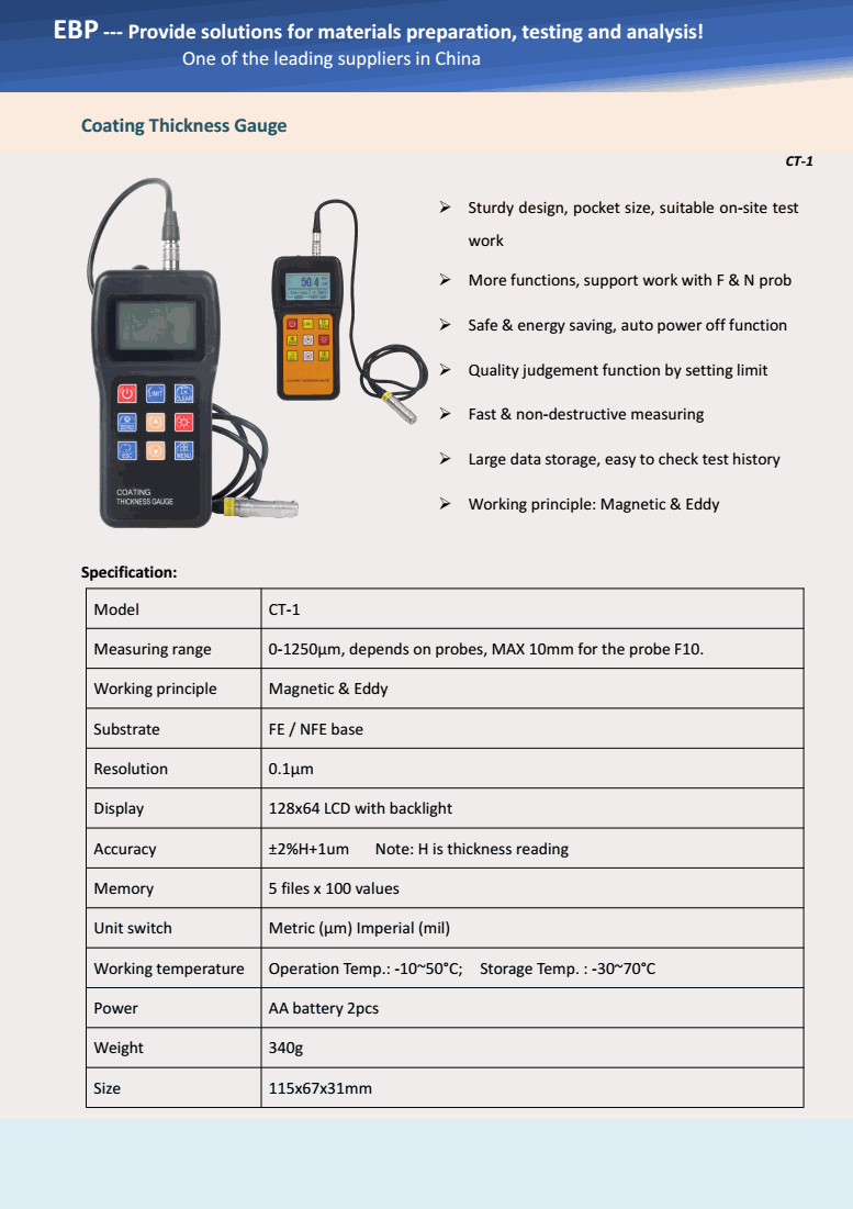 EBP CT-1 Coating Thickness Gauge (0-1250μm; ±2%H+1um) | EMINKH.COM