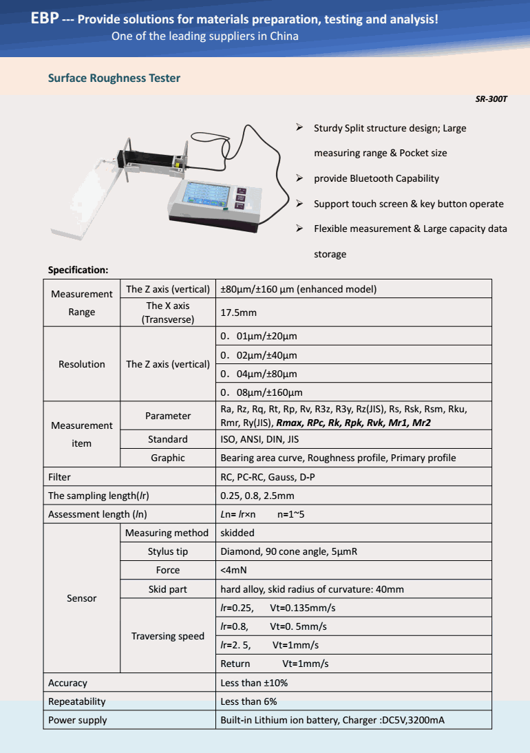 Parameter: Ra, Rz, Rq, Rt, Rp, Rv, R3z, R3y, Rz(JIS), Rs, Rsk, Rsm, Rku, Rmr, Ry(JIS), Rmax, RPc, Rk, Rpk, Rvk, Mr1, Mr2