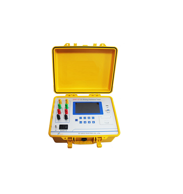 EPWT-10T is three-channel DC resistance tester for YN connection windings. EPWT-10T realizes three-phase simultaneous power-on, independent current sampling and voltage sampling, and simultaneously measures and displays the three-phase resistance value and three-phase unbalance rate, which greatly shortens the test time of the DC resistance of the transformer and solves the power transformer.