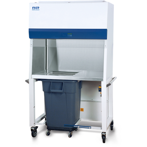 Bedding disposal animal workstations are specifically designed to protect the personnel and the lab environment from exposure to allergens and unpleasant odors. The industry-exclusive hydraulic height-adjustable stand allows the work surface height to be adjusted to user preference therefore minimizing strain during repetitive operations. An integrated waste container enables direct disposal of waste items within the work zone offering simpler, safer, and more productive cage cleaning and bedding disposal procedures.