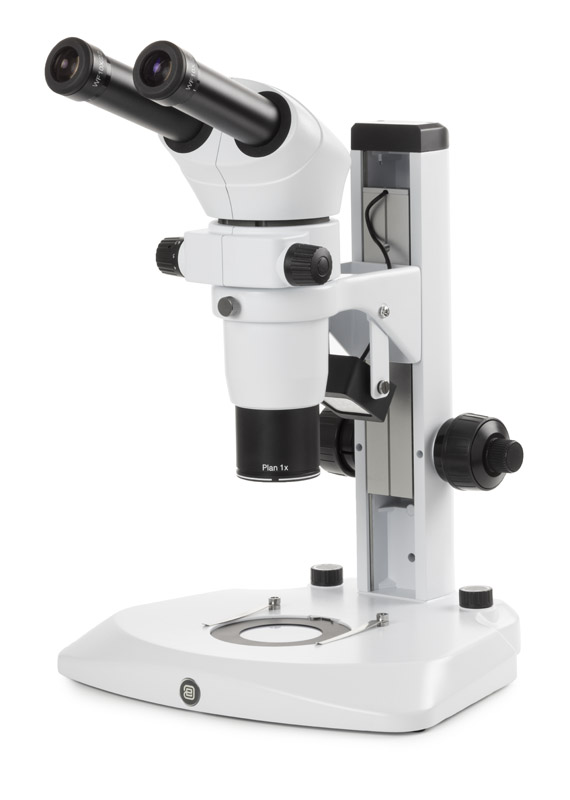 0.8x to 8x zoom objective, magnification from 8x to 80x. Field of view from 27.5 mm to 2.8 mm. Working distance 78 mm