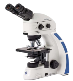 OX.3232/470 Binocular Oxion microscope for fluorescence with Plan semi apochromatic Fluarex PL-FL 4/10/S40/S100x oil IOS objectives and reflected 470 nm FluoLED epi-illumination attachment with a single cube with filters for Blue excitation with EX 465-495 DM 505 EM 515-555