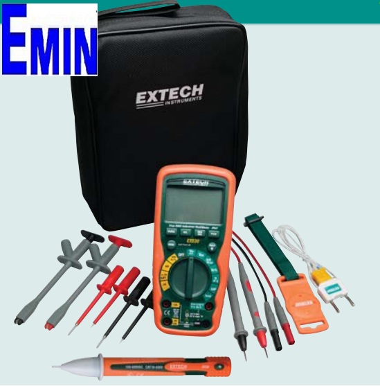 Meter with double molded test leads, magnetic hanging strap, Type K bead wire temperature probe, carrying case, and one 9V battery. Also includes a set ofCAT III-100V Electrical Test Lead kit TL810