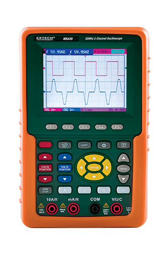 Complete with two 1X/10X oscilloscope probes, test leads, Windows® 95/98/NT/ 2000/ME/XP compatible USB software and cable, capacitor measuring module, adjustment screwdriver, AC adaptor/charger, and hard carrying case