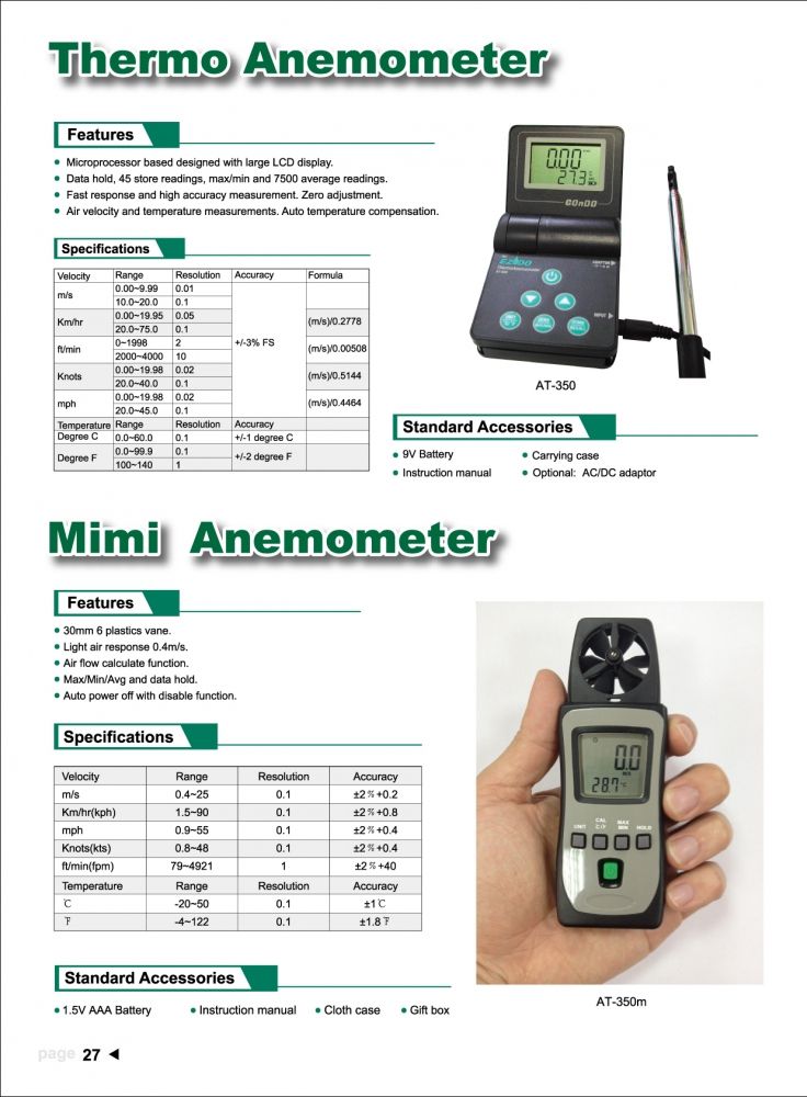 Ezdo AT-350m Mini Anemometer (0.4~25m/s/ ±2%+0.2) | EMINKH.COM