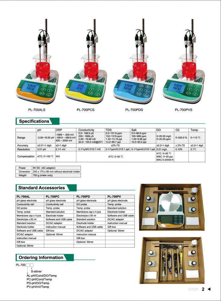 Accessories:pH Electrode, DO probe, T/probe, Standard solution, AC/DC adaptor, Electrode holder, Membrane cap, Electrolyte, USB Software & Connection cable, Magnetic Bar.