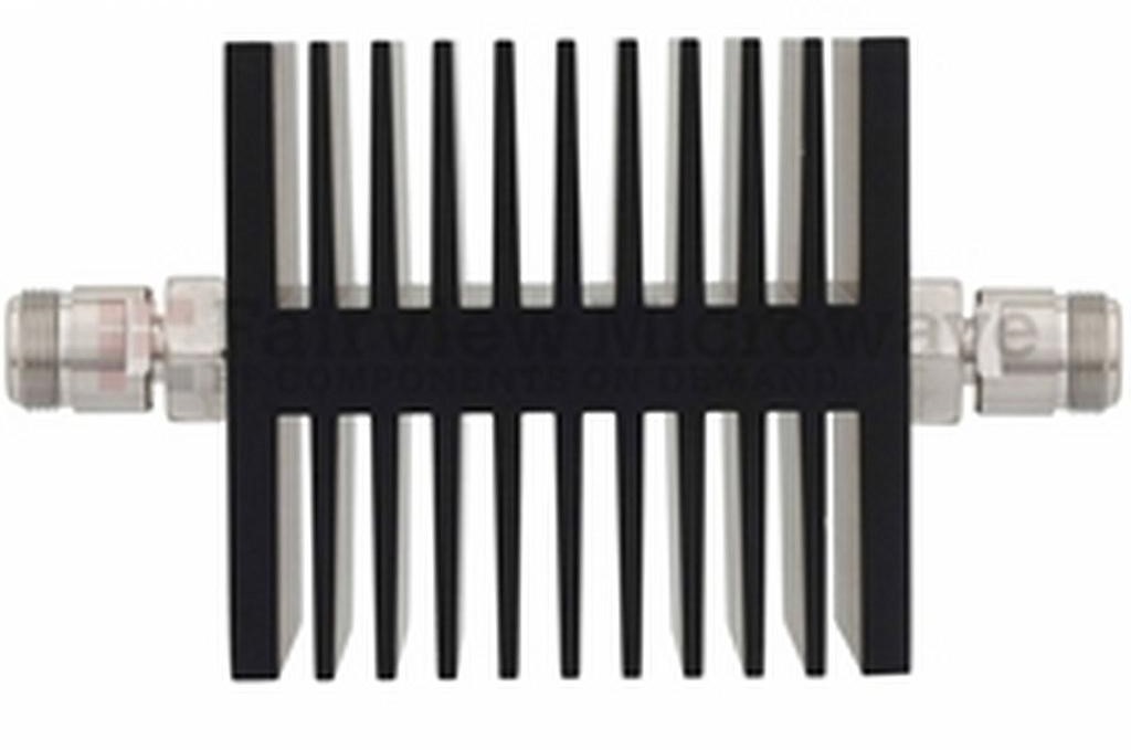 Fairview SA18NFNF50W-30 30 dB Fixed Attenuator N Female To N Female Directional Up To 18 GHz Rated To 50 Watts With Black Aluminum Heatsink Body