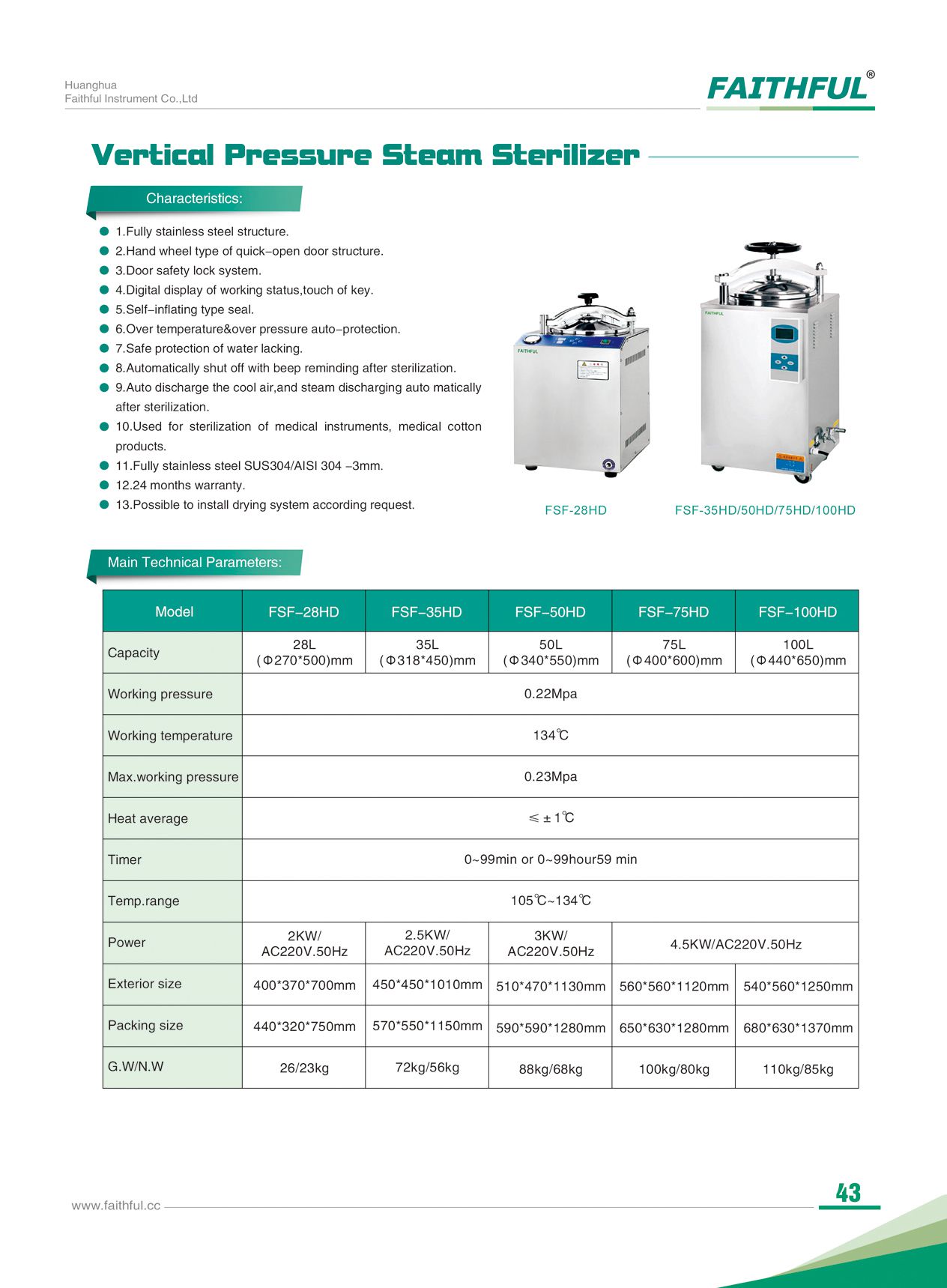 Faithful FSF-75HD Vertical Pressure Steam Sterilizer (75L) | EMINKH.COM
