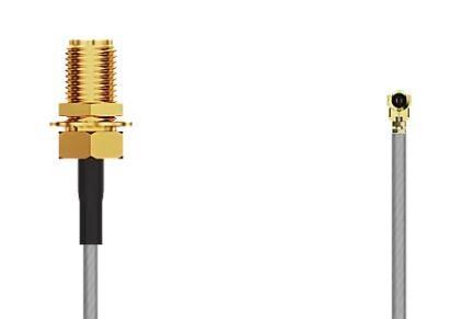 GCT (Global Connector Technology) CABLE 348 RF-150-A-1 RF Cable Assemblies I-Pex MHF I RA Plug2SMA STRJck R Mt 6 GHz,150mm, 1.13mm grey