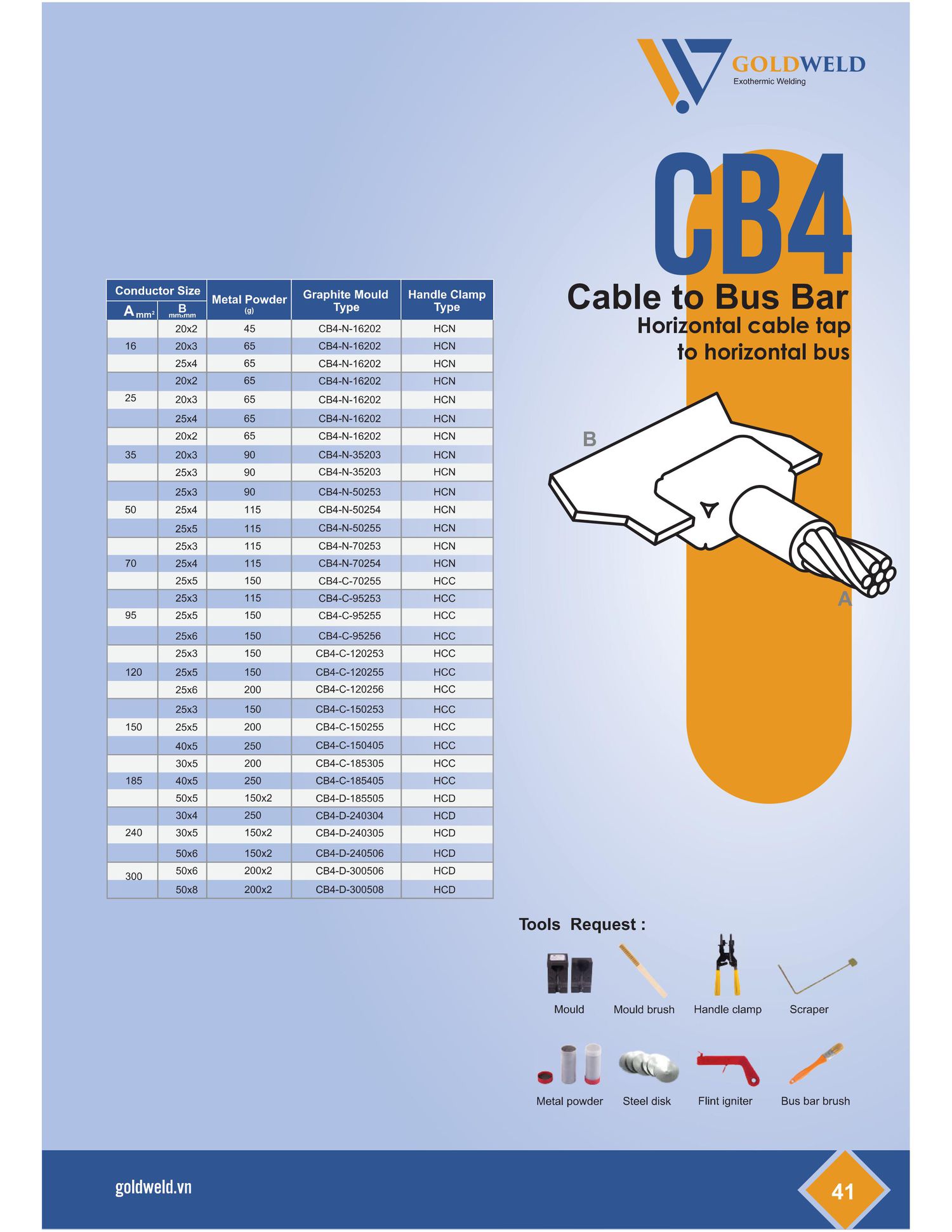 Goldweld CB4-N-16202 Welding Mould connect Bus bar to Bus bar (A: 16mm²; B: 20x2mm) | EMINKH.COM