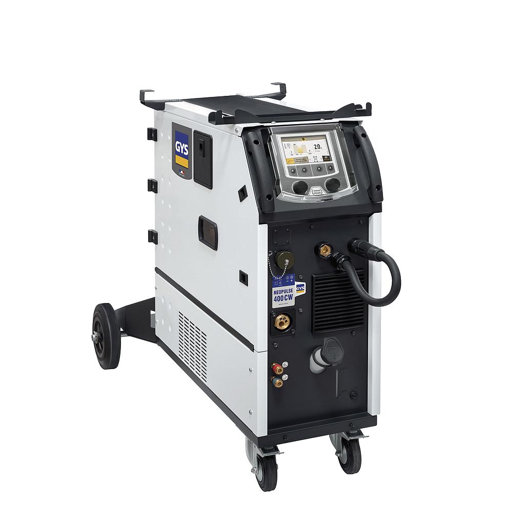 The NEOPULSE 400 CW is a three-phase, pulsed, MIG/MAG generator developed for heavy industry. The NEOPULSE 400 CW is mobile and equipped with a cooling unit and a powerful reeling system, making it ideal for handling demanding pulsed applications. Both intuitive and highly practical, its digital interface makes adjusting the welding settings very easy.