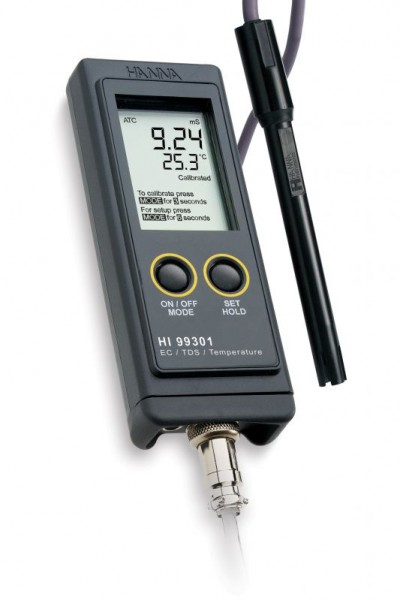 Ordering Information: HI99301 is supplied with HI76306 EC/TDS probe, batteries, instruction manual, and rugged carrying case.