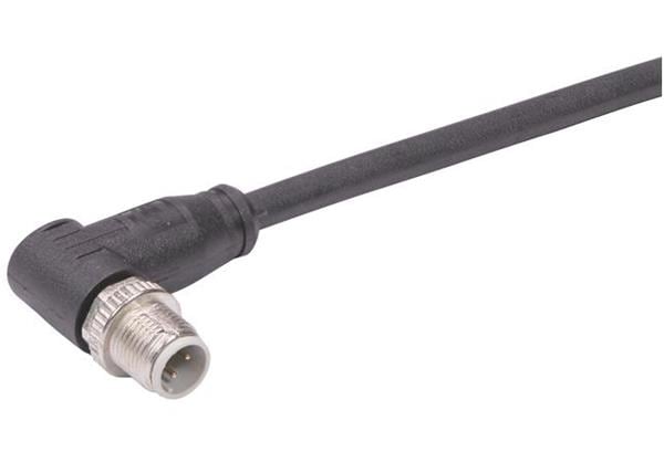 HARTING 09488000011005 Sensor Cables / Actuator Cables M12 D-code Overmolded Cable Assembly, single ended, angled male, EtherRail Flex (4xAWG22/7), black, 0.5m