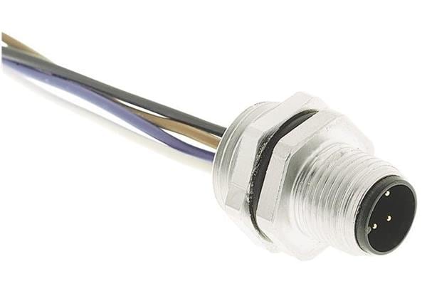 HARTING 21033711405 M12 PFT M12 D-code 4pin male panel feed through (M16) to 0.5m AWG20 flying leads | EMINKH.COM
