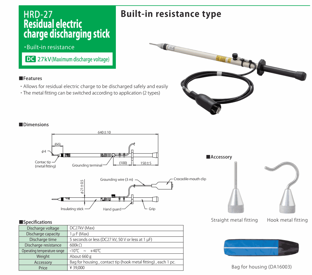 HASEGAWA HRD-27 Residual Electric Charge Discharging Stick (DC 27kV) | EMINKH.COM