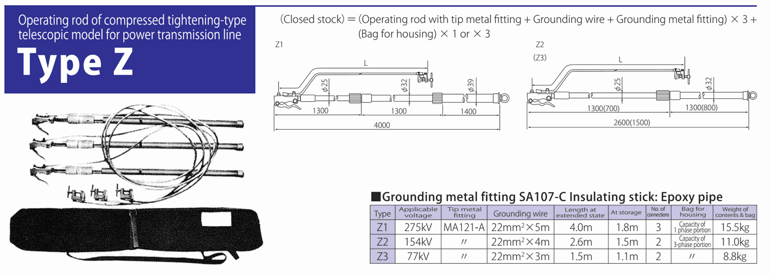 HASEGAWA Z3 Operating Rod of Compressed Tightening-type Telescopic Model for power tranmission line (77kV) | EMINKH.COM