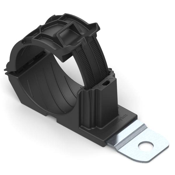 HellermannTyton 151-02012 Ratchet Clamp Ratchet P-Clamp, 1.38 - 2.01" Bundle Dia, 180 Med, 0.26" Hole Dia, PA66HIRHSUV/SS304, Black, 140/ctn | EMINKH.COM