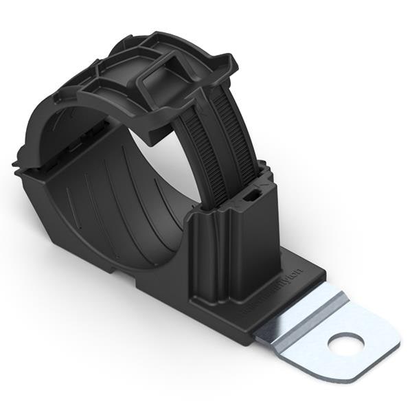 HellermannTyton 151-03043 Cable Mounting & Accessories Ratchet P-Clamp, 1.42 - 2.0" Bundle Dia, 180 Short, 0.26" Hole Dia, PA66HIRHSUV/ST/ZN, Black, 20/bag